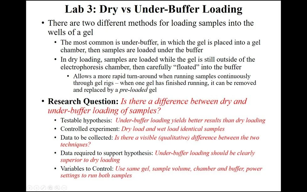 Five Extended Labs include Gel Reuse via Re-melting, Gel Reuse via Sample Runoff, Variation in Gel Concentration, Variation in Buffer Concentration, Variation in Buffer Type.